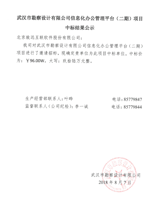 武漢市勘察設(shè)計有限公司信息化辦公管理平臺(二期)項目中標結(jié)果公示